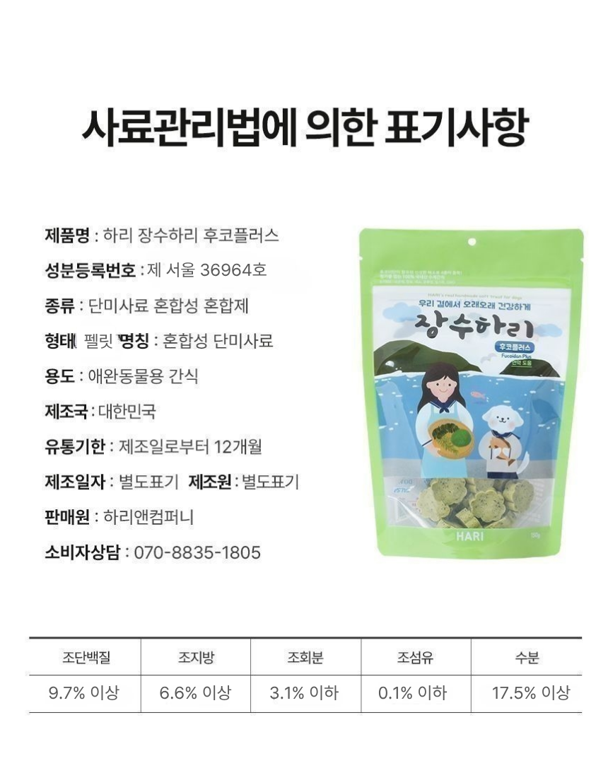 장수하리 후코플러스 강아지 후코이단 수제간식