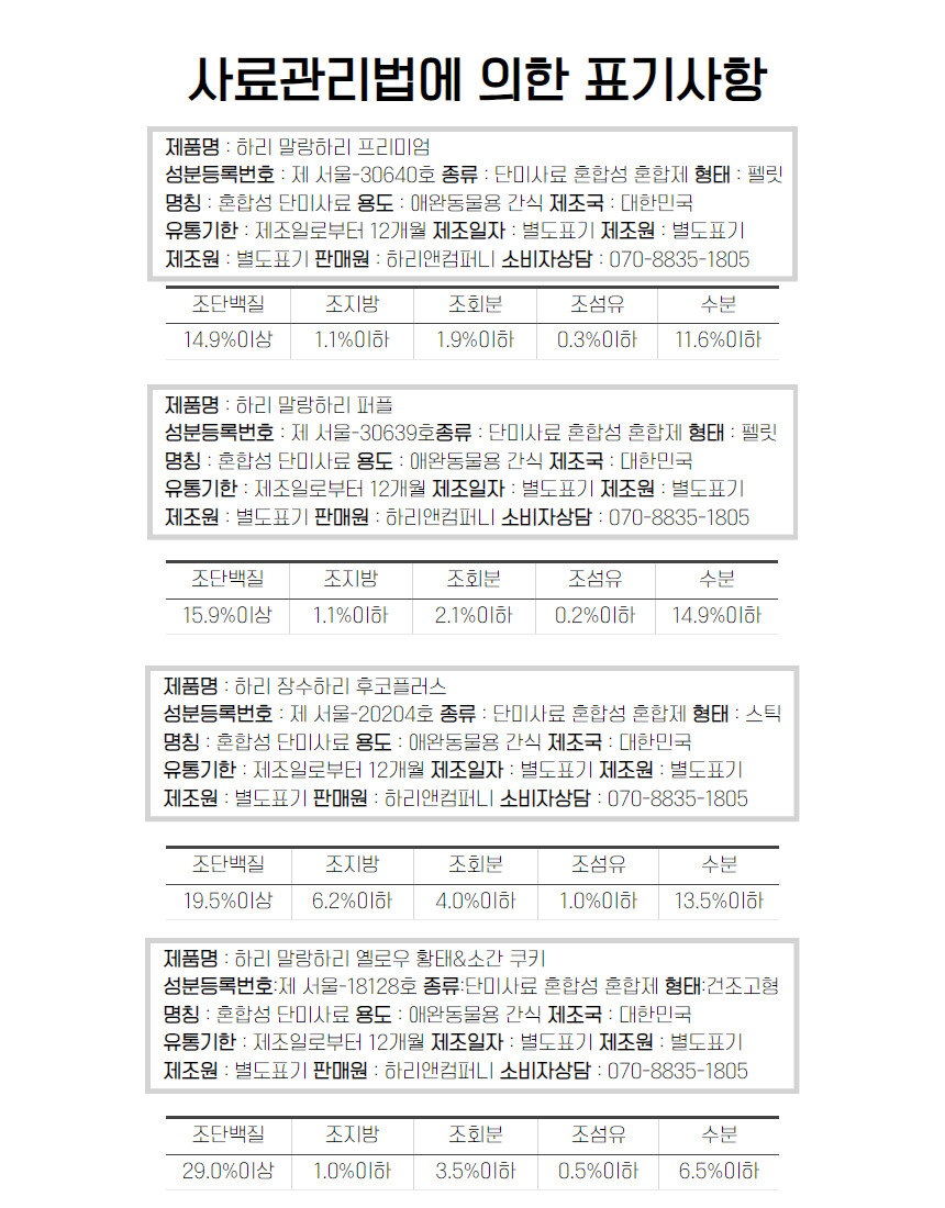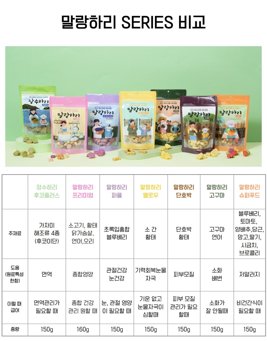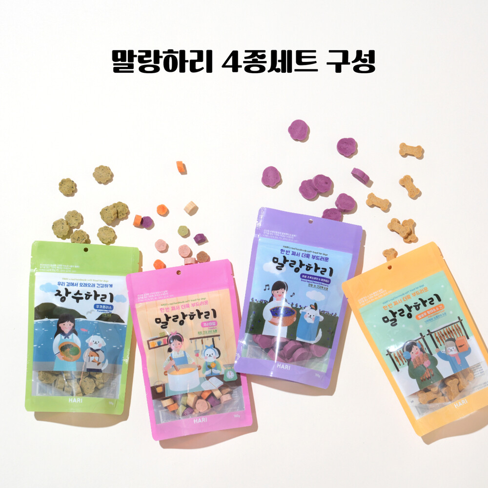 말랑하리 4종 (장수하리, 프리미엄, 퍼플, 옐로우)을 10% 할인된 가격에 구매 가능한 세트 상품입니다.
