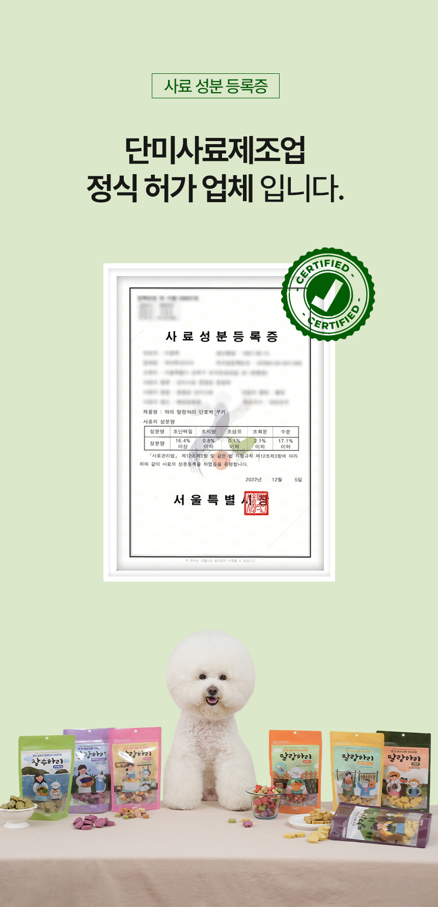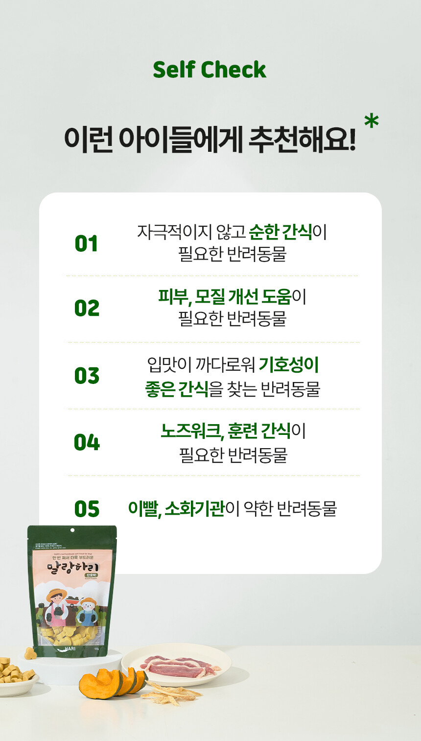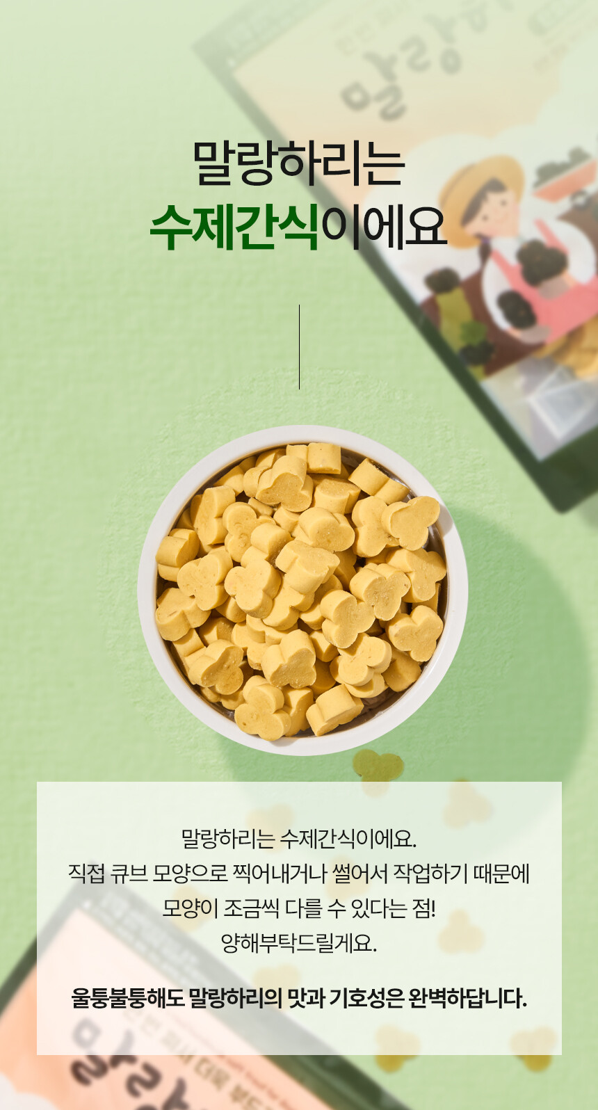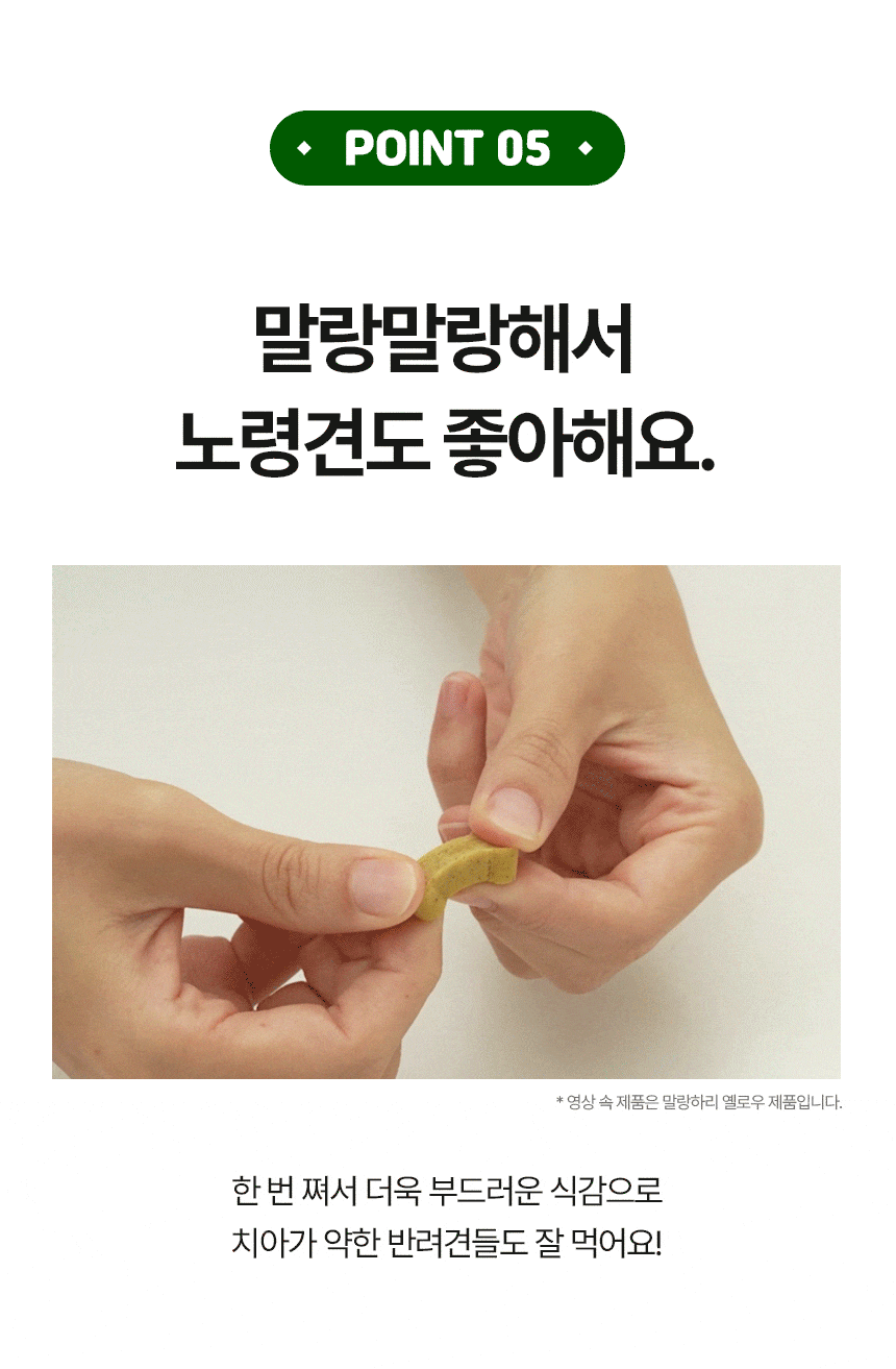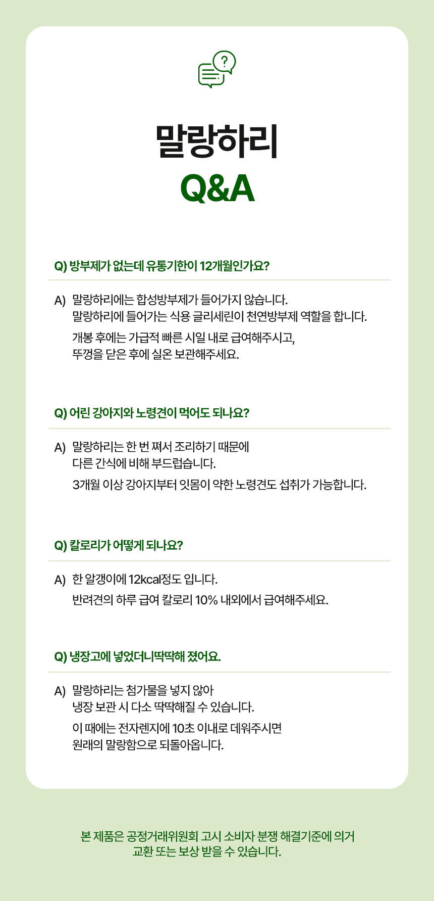 전 성분: 단호박 (국내산), 오리안심 (국내산), 황태 (러시아산), 타피오카전분, 글리세린