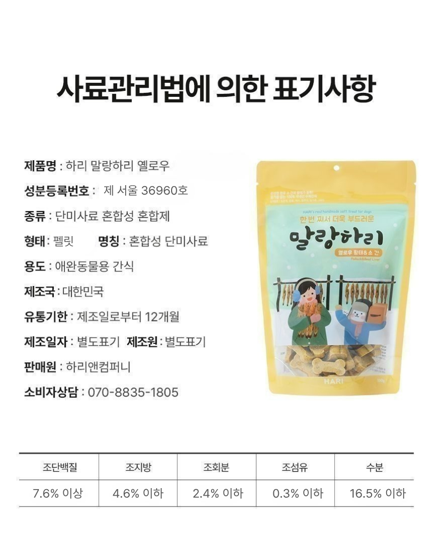 전 성분: 현미(국내산), 황태(러시아산), 한우 소 간, 글리세린