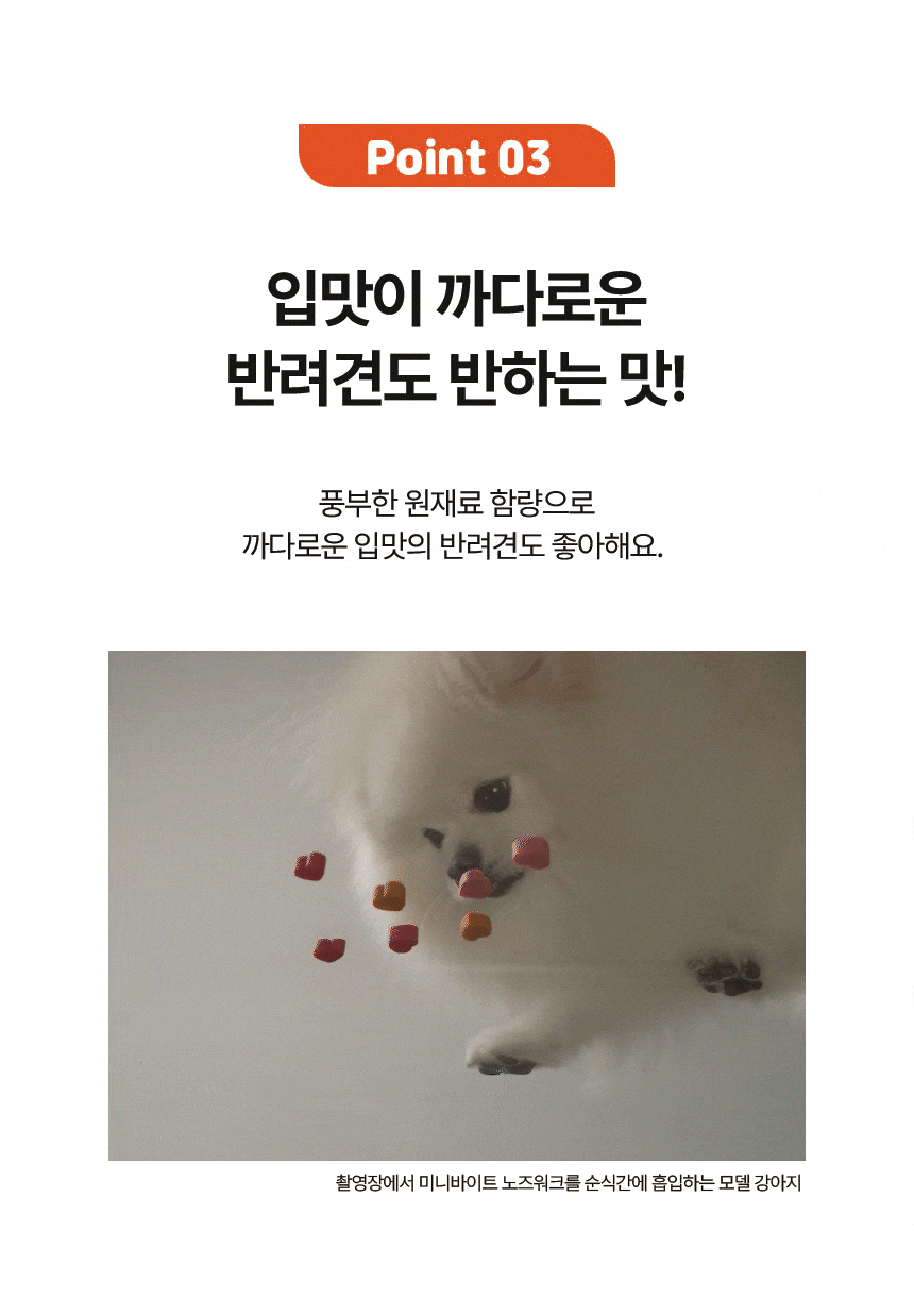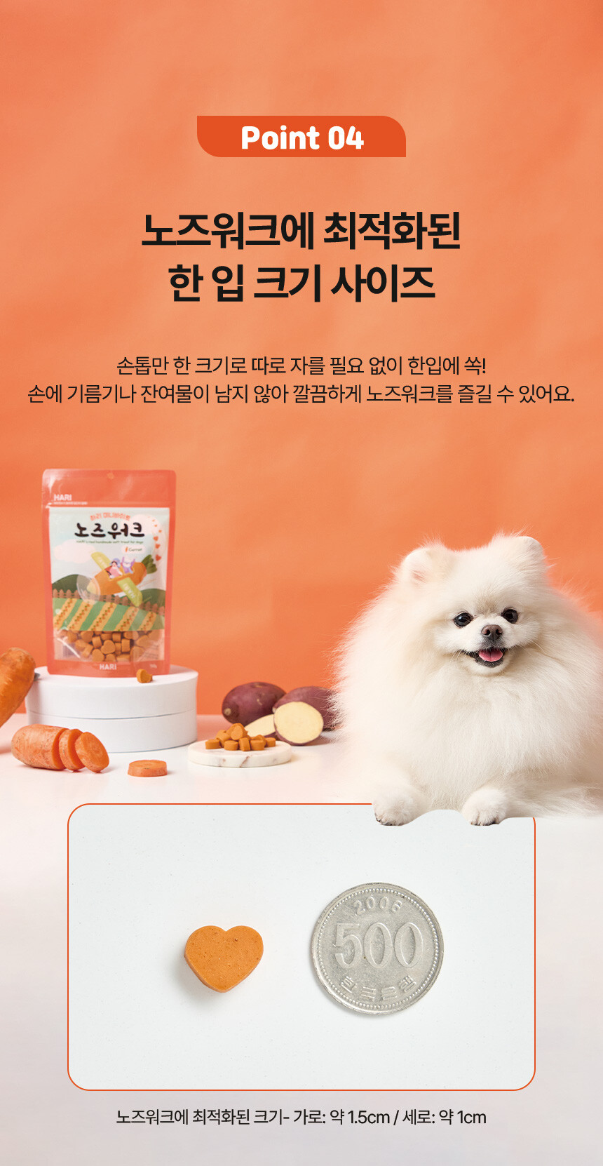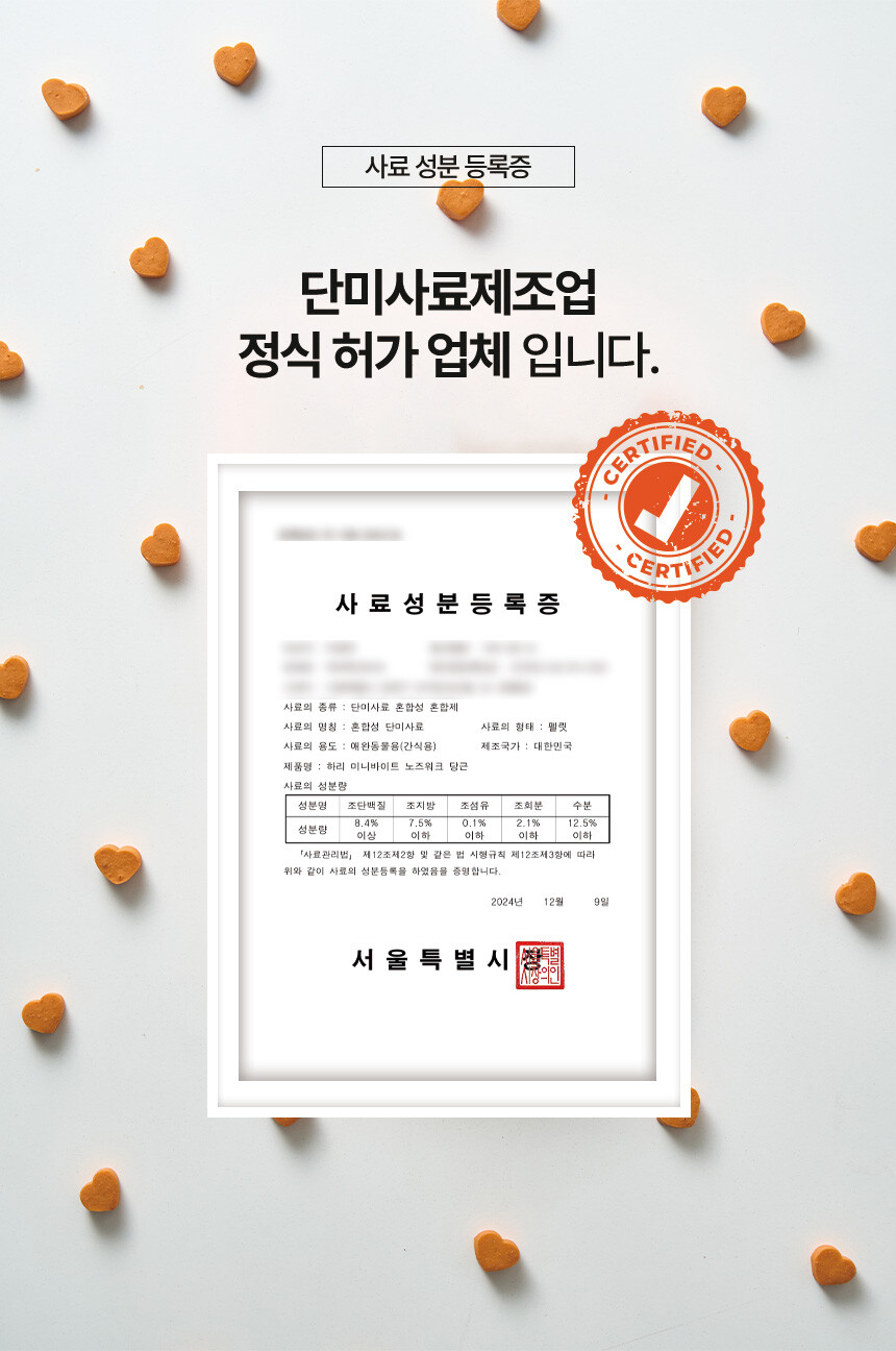 전 성분: 당근, 농축당근분말, 콩, 고구마전분, 타피오카전분, EPA 및 DHA 함유유지, 식용글리세린