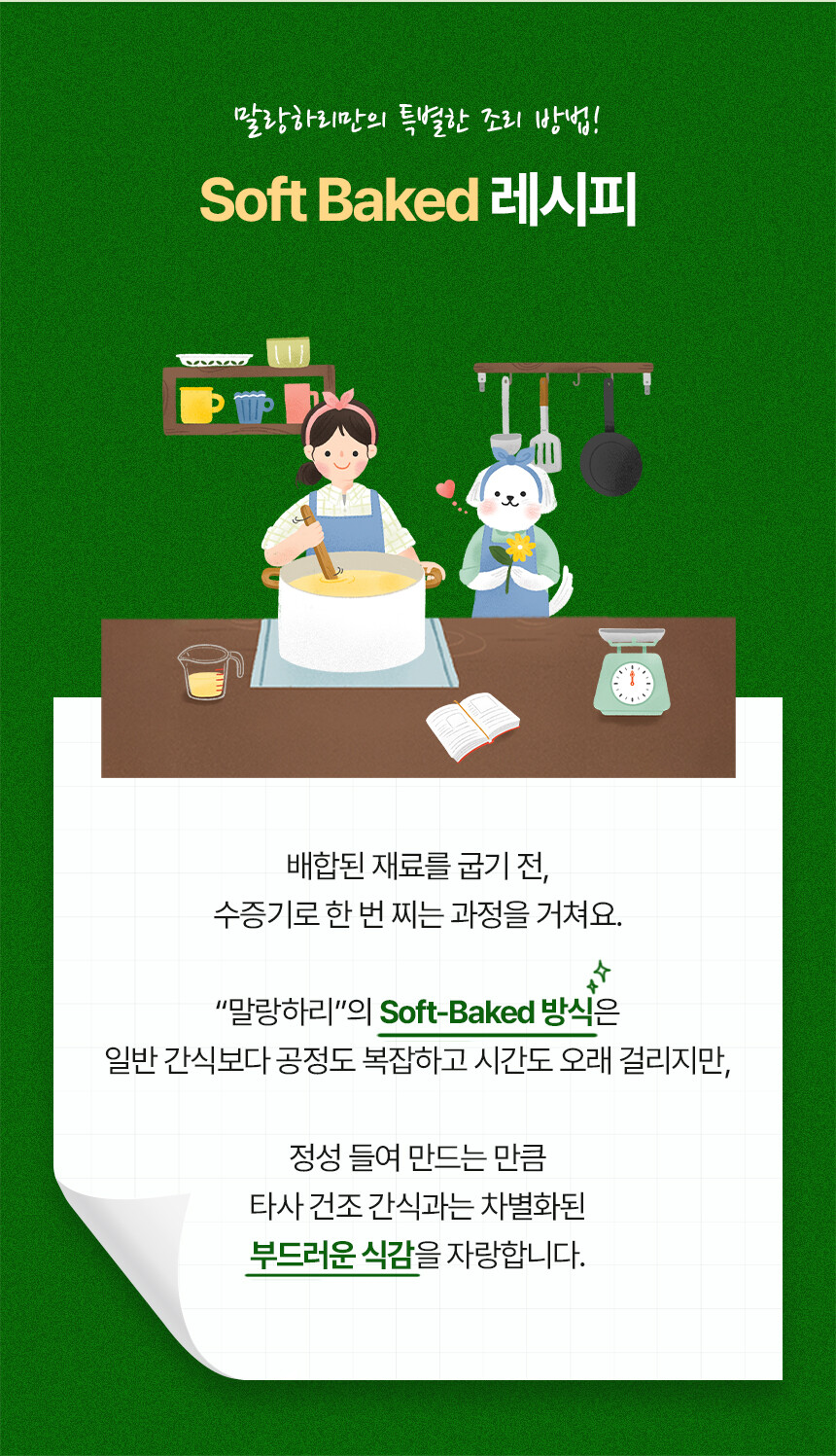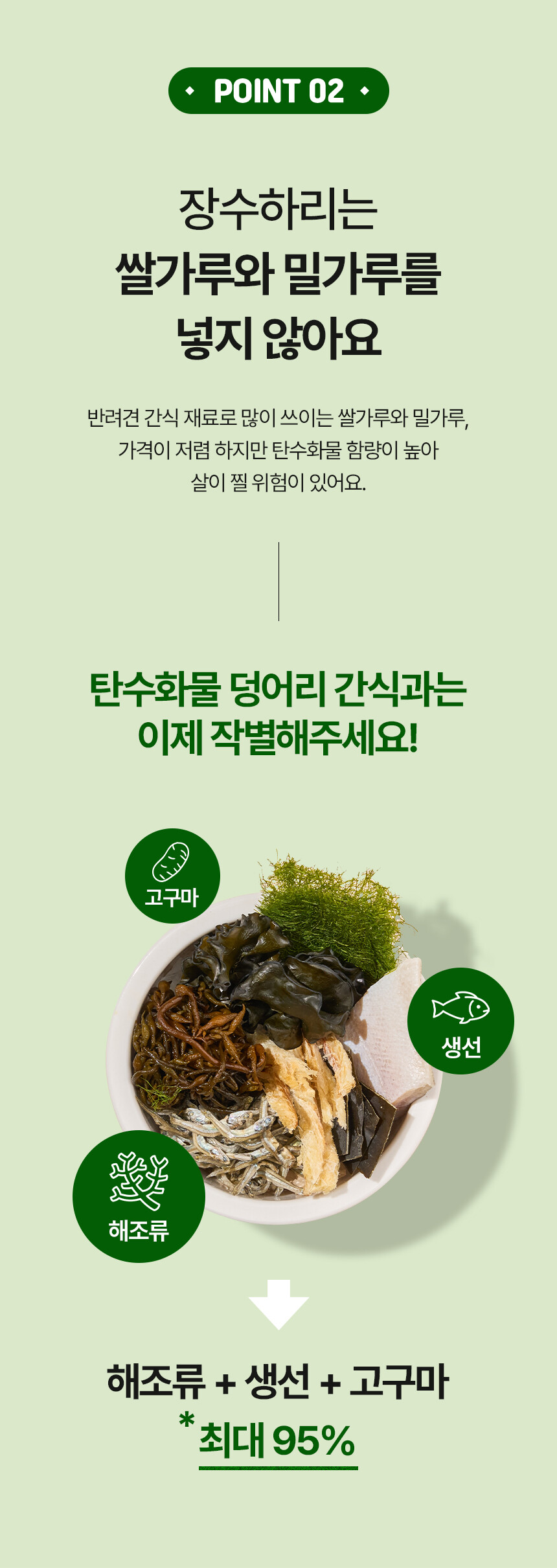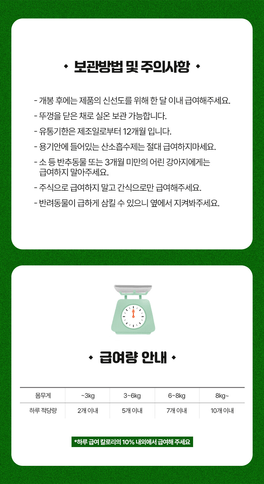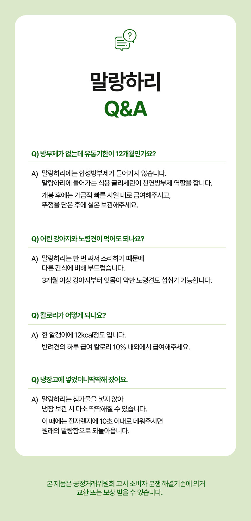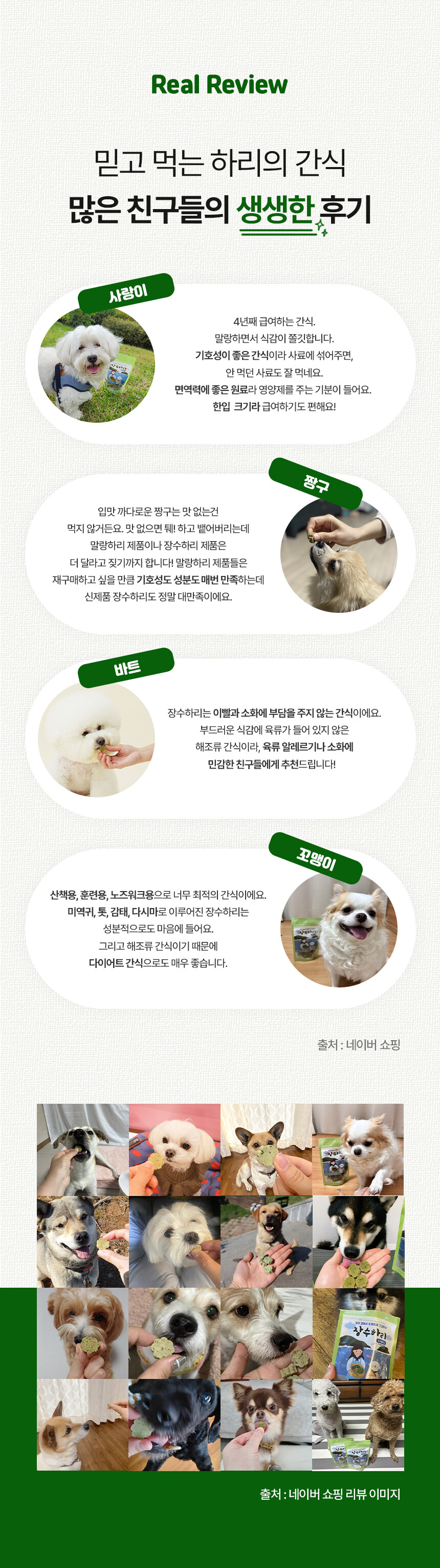 전 성분: 가자미, 미역귀, 다시마, 톳, 감태, 황태, 멸치, 고구마, 타피오카전분, 글리세린