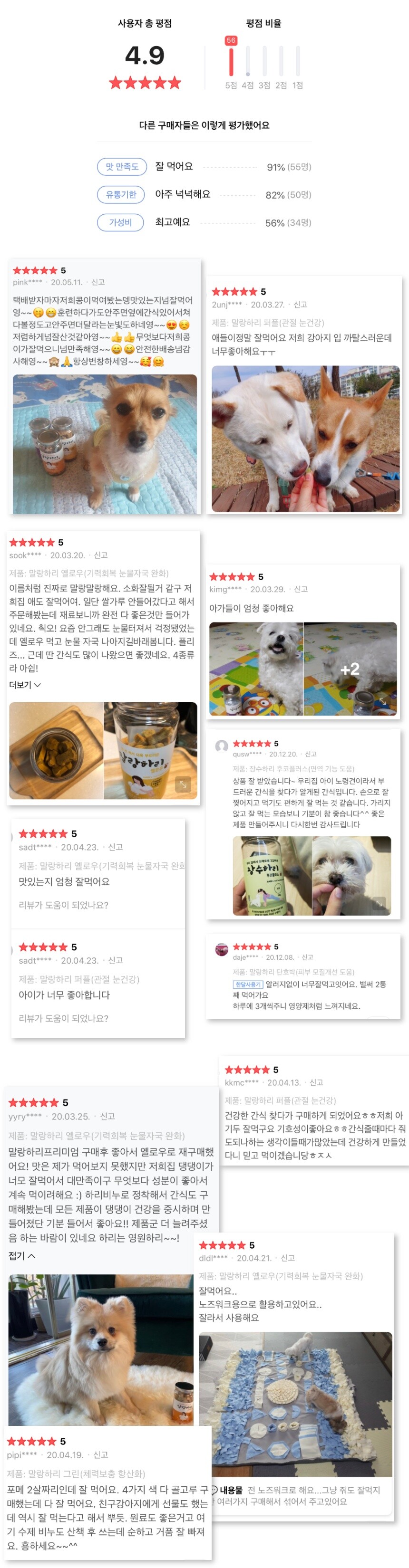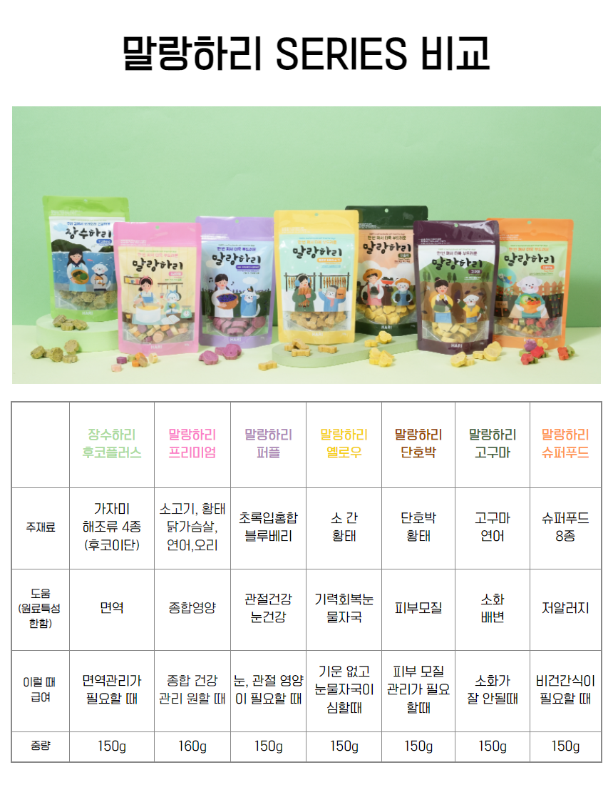 말랑하리 6종 (장수하리,프리미엄, 퍼플, 옐로우, 단호박, 고구마)을 15% 할인된 가격에